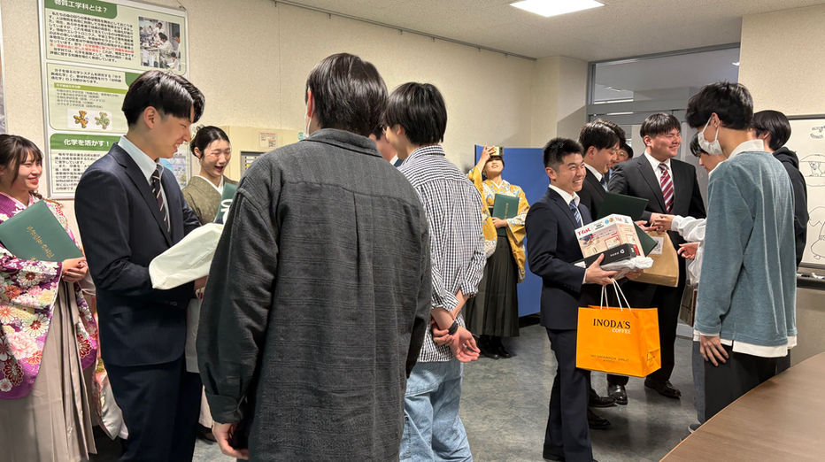 B4上林君、尾崎君が卒業しました。新天地でも活躍あれ!